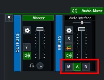 3. Open up the vMix Audio Mixer and turn off the "M" bus and enable bus "A" instead.