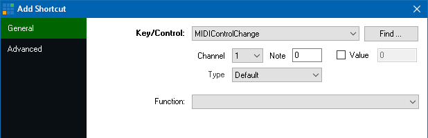 Channel and Note are automatically detected by clicking Find and pressing the MIDI button or moving the fader or knob.