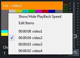 To switch between items with the playlist, right click the preview area of the input and left click the item from the dropdown list.