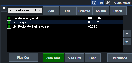 If supported by the video or audio format, vMix will display a Total Time Remaining for the entire List.