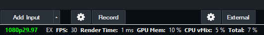 In the bottom left corner of vMix are usage or performance statistics to help you monitor the usage in vMix.