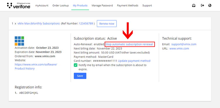 All vMix software sales and subscriptions are handled by our payment provider - 2Checkout. In order to manage your subscription including cancellation of auto renewals (unsubscribe), please login to your 2Checkout account portal.