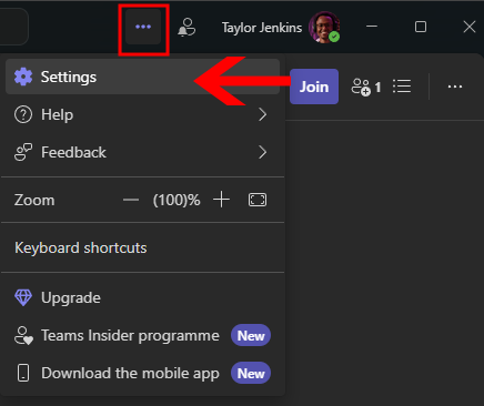 Open Teams. Then click the 3 button icon up the top and choose Settings.