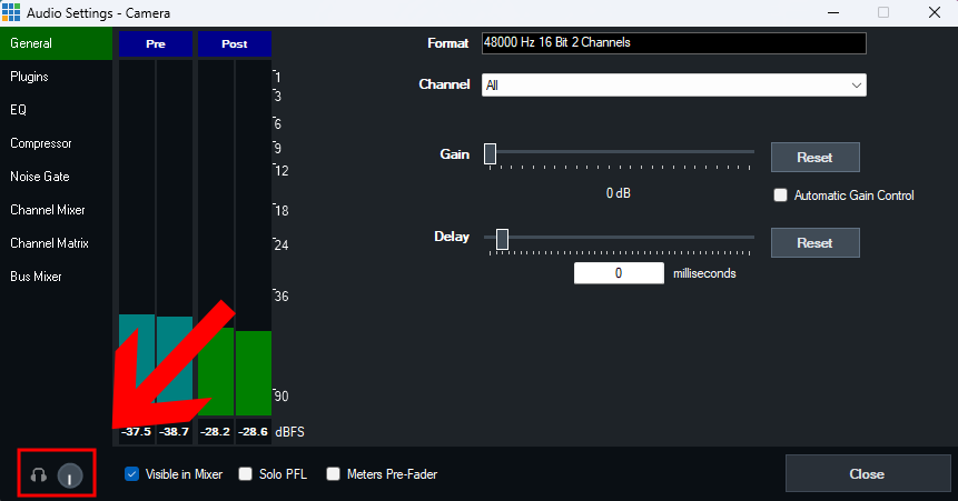 Go to the Audio Mixer in vMix. Activate the Bus A button on any audio inputs you wish to send to Teams. Such as your Microphone input or Camera input with embedded audio.