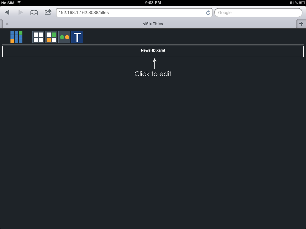 On the Titles screen you will see any titles that you have already created for your vMix production. Click on any of the titles to edit them. The Title Editor screen will allow you edit the title.