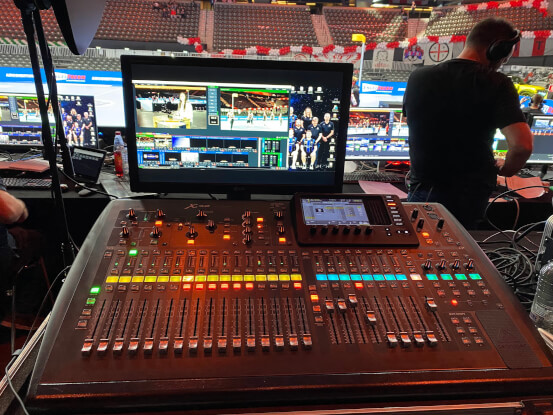 One for each stream to mix the studio, match video, interviews, and titles for the final stream. The final streams were streamed to the Eyecons sport video platform (eyecons.com).